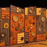 Another look of a section of Found Round Object walls from #edc2021. Still buzzing from #nomadlands install. @bokofineart #insomniacevents #containerart #decorativewalls #modularwalls #upcycledart #upcycle