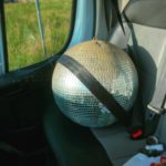 Safety first! Getting ready to represent the Portland Winter Light Festival at the Starlight Parade this Saturday. #discoball #portlandwinterlightfestival #starlightparade #tylerfuquacreations